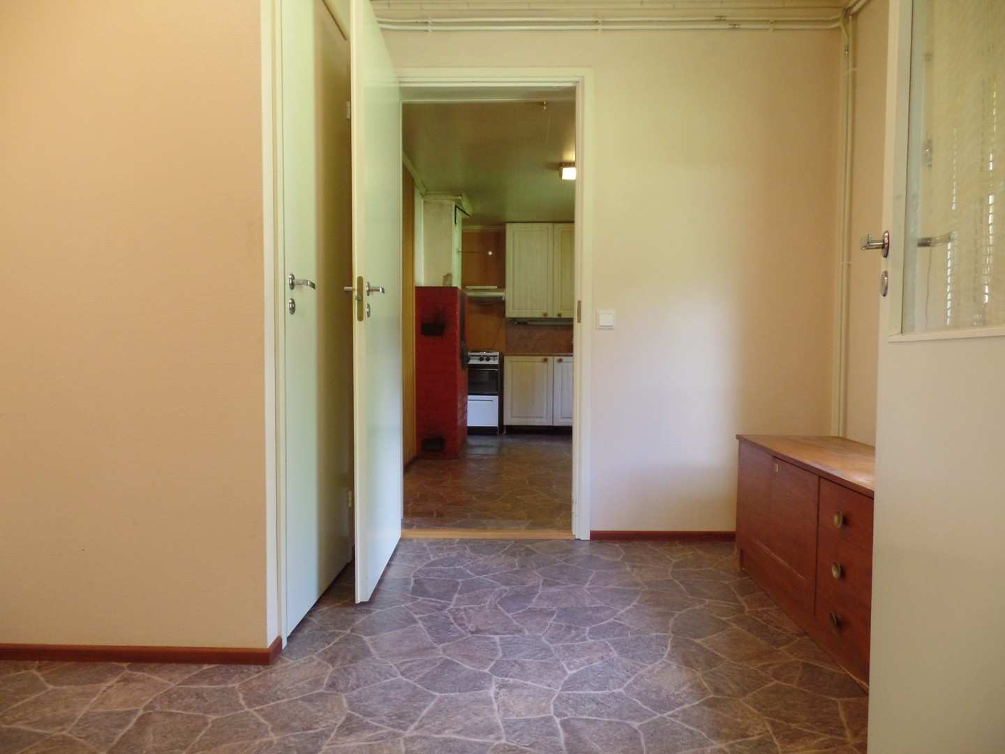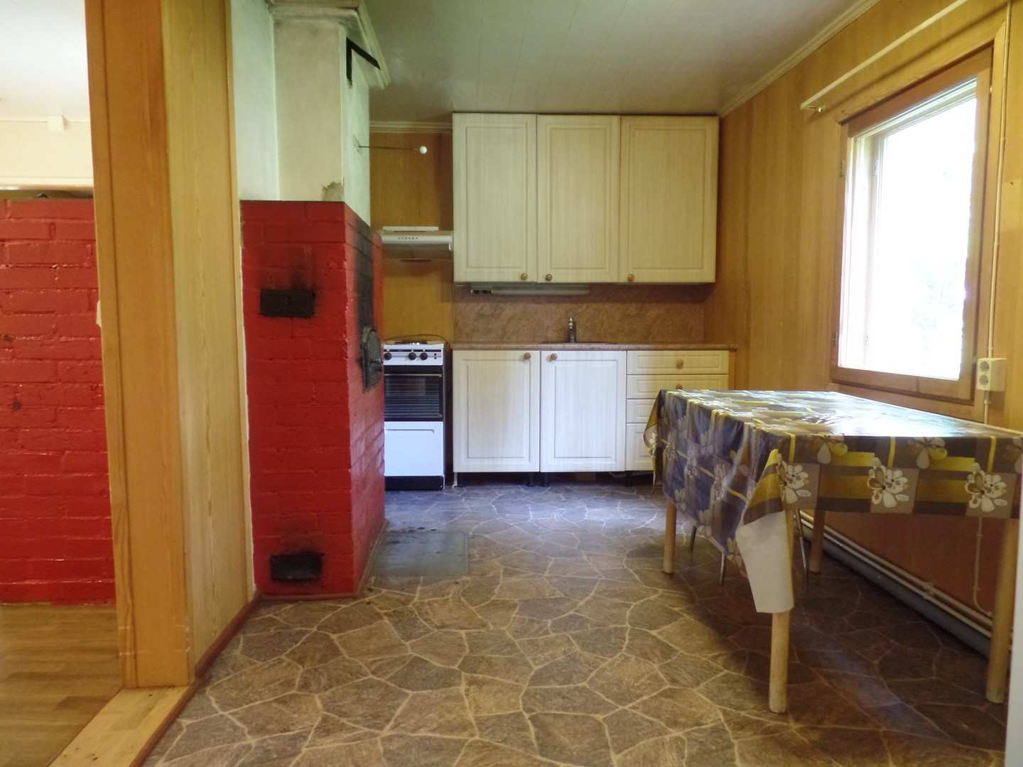 | Keittiön materiaalit | Lattia: Muovimatto Seinät: Puulevy |