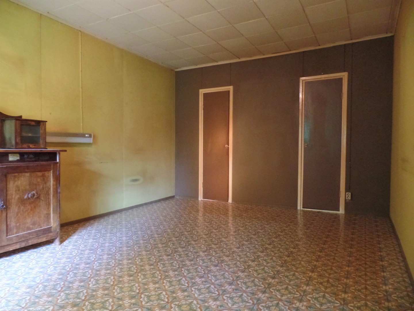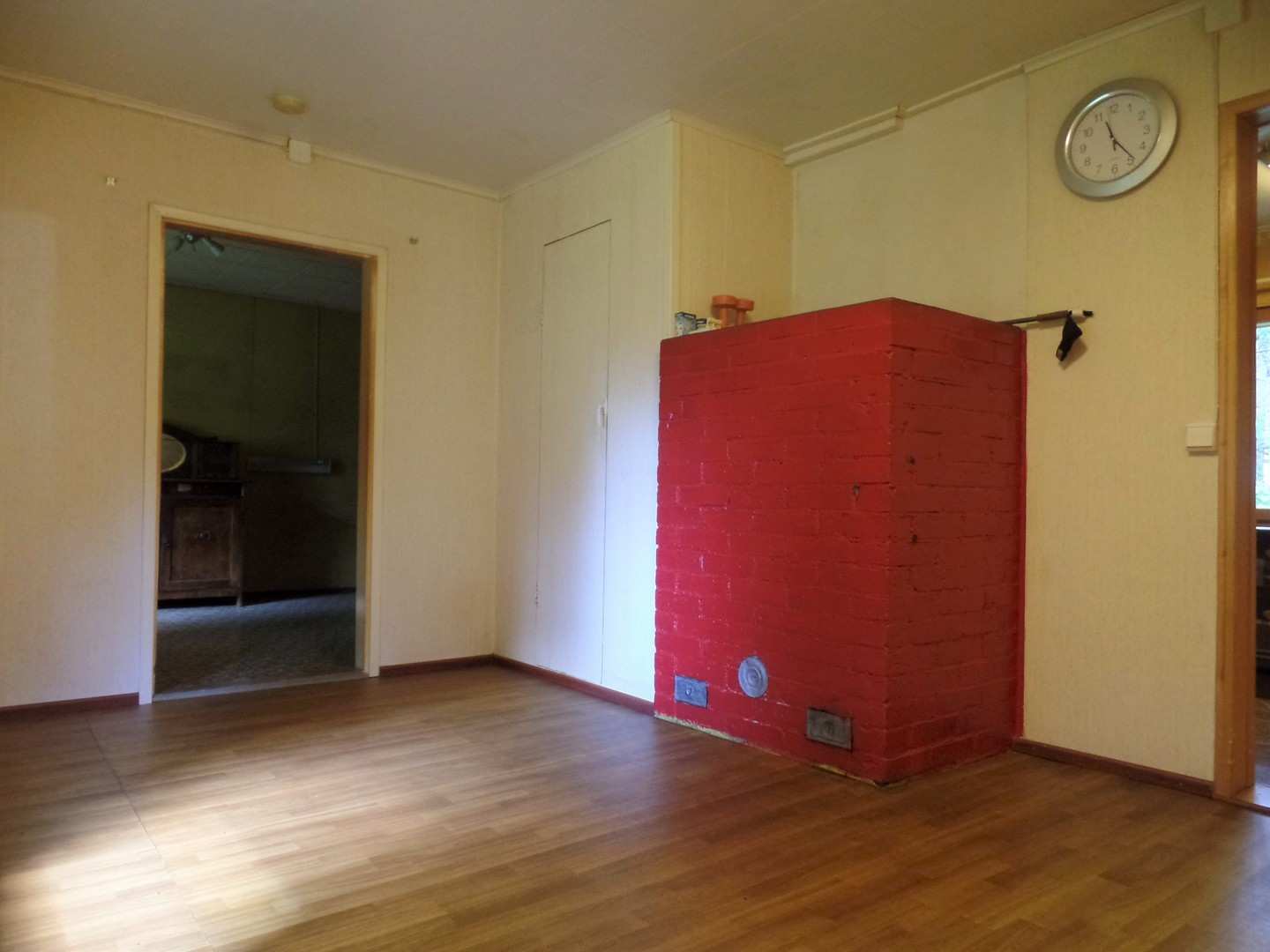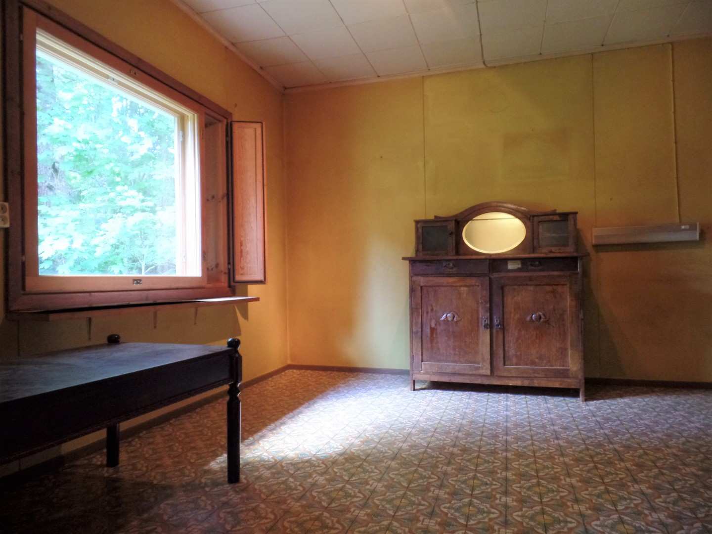 | Olohuoneen materiaalit | Lattia: Muovimatto Seinät: Tapetti |