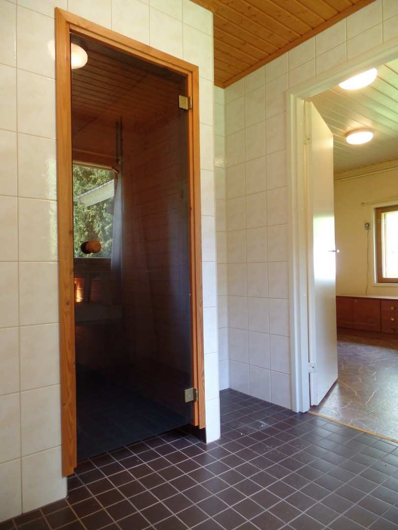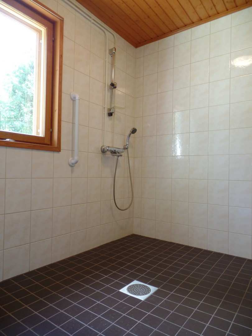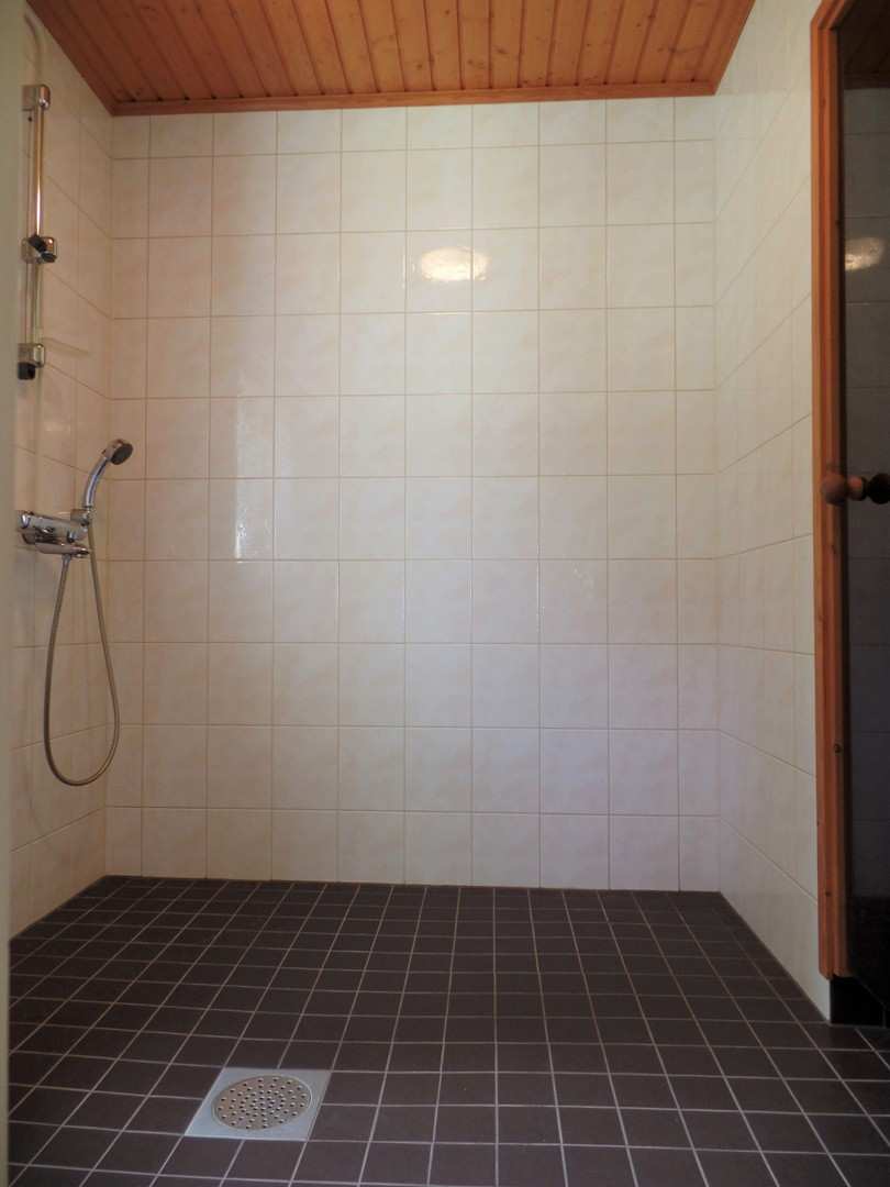 | Kylpyhuoneen materiaalit | Lattia: Laatta Seinät: Lasikuitutapetti ja kaakeli |