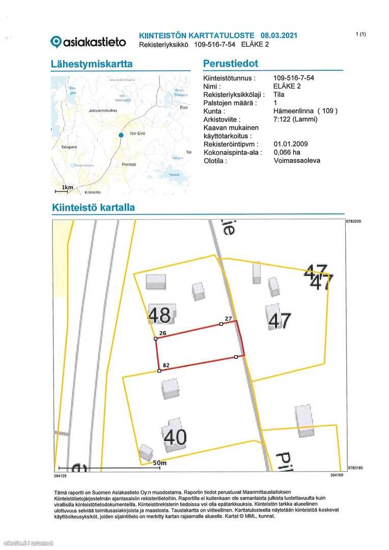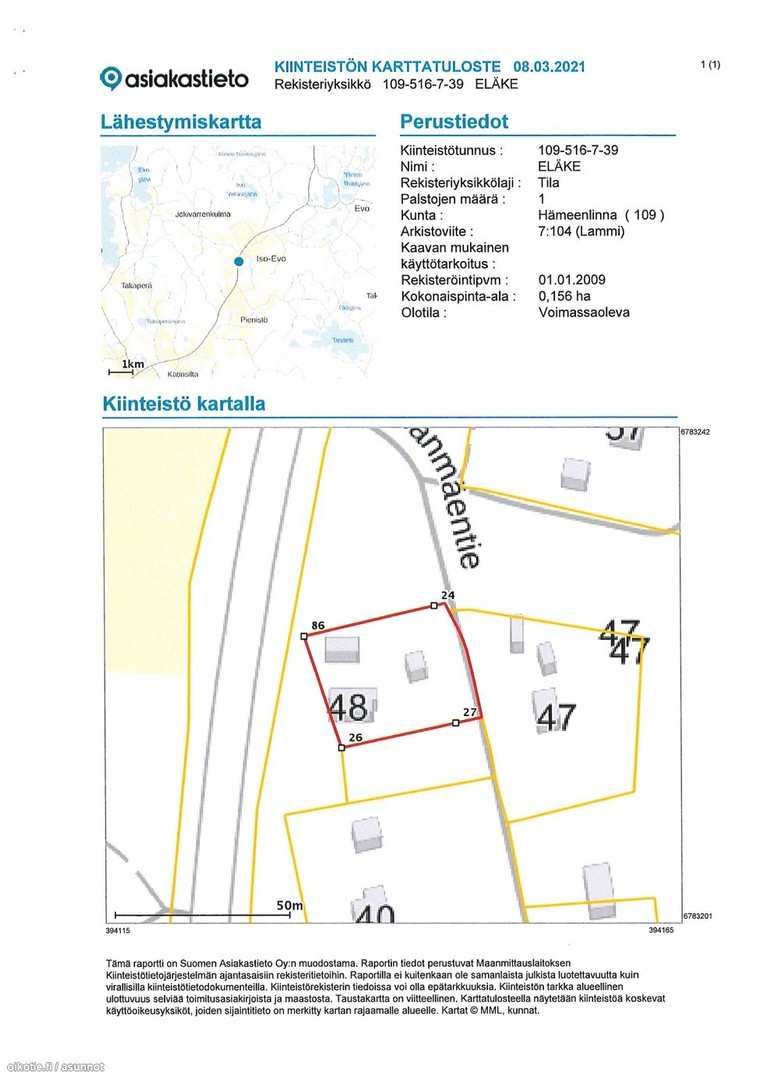 | Kiinteistötunnus | 109-516-7-39 ja 109-516-7-54 |
