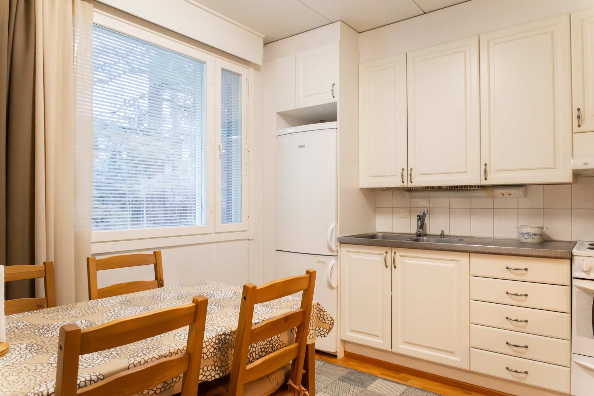 | Keittiön materiaalit | Lattia: Laminaatti Seinät: Maali ja välitilassa laatta |