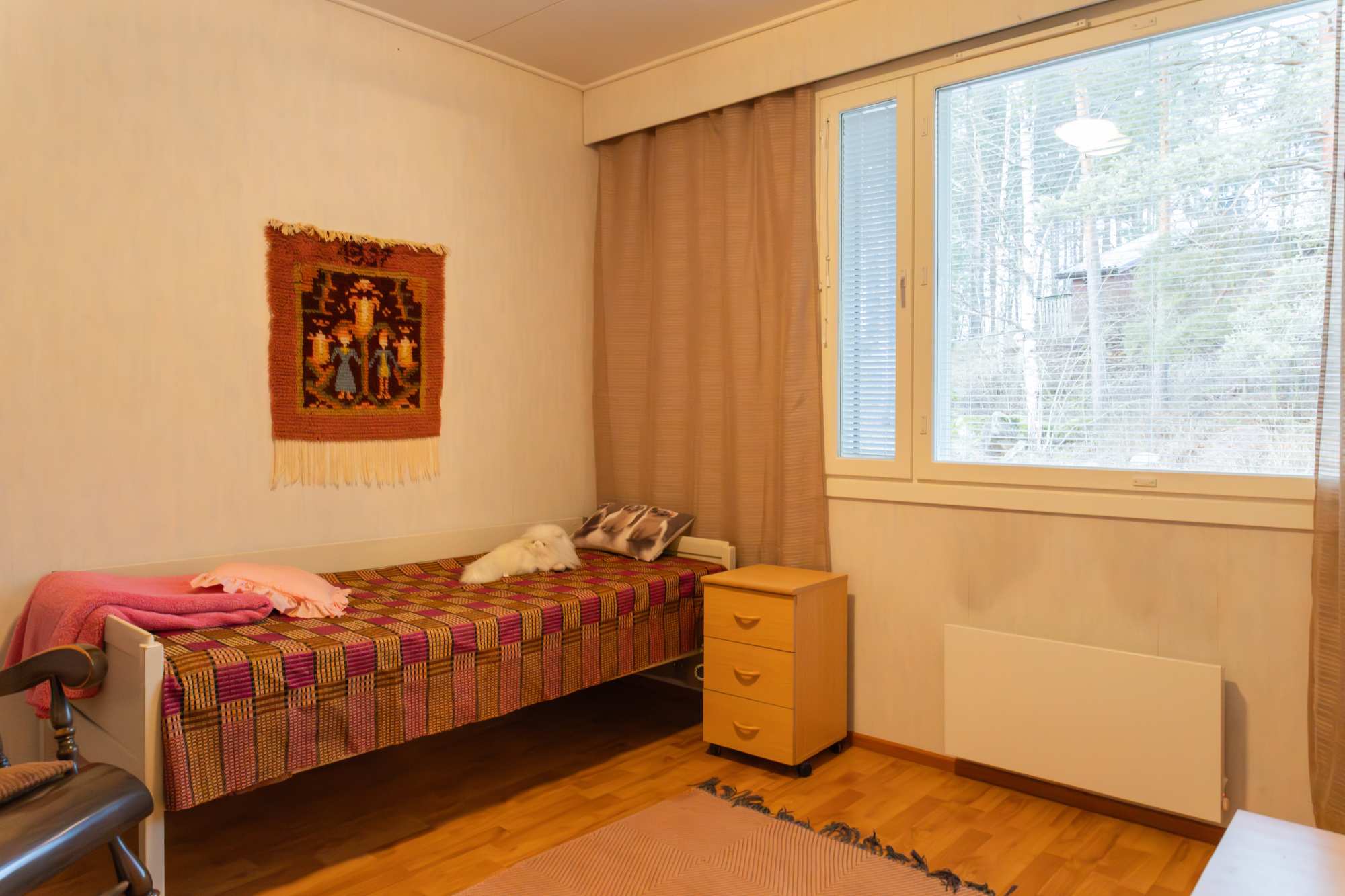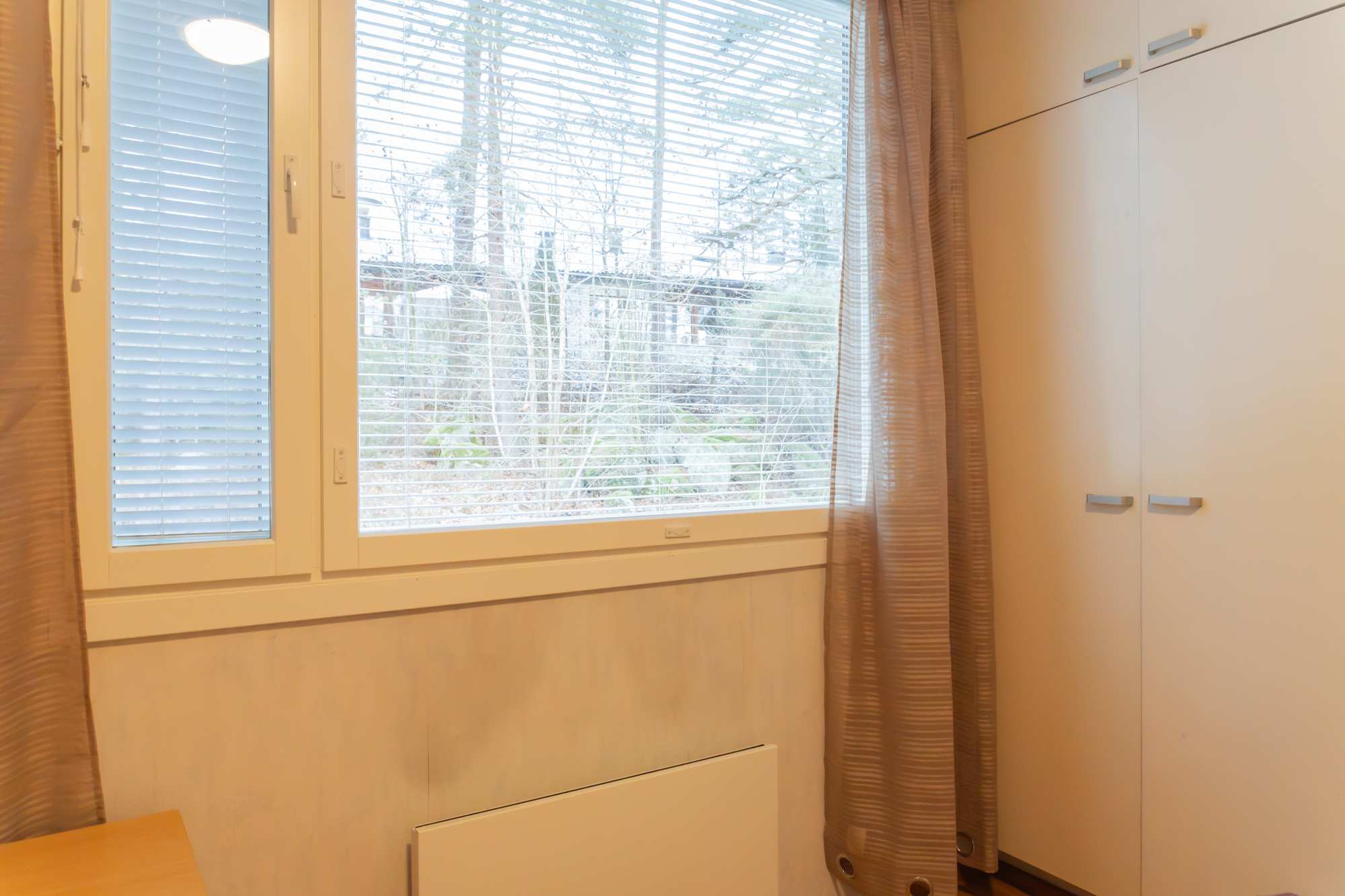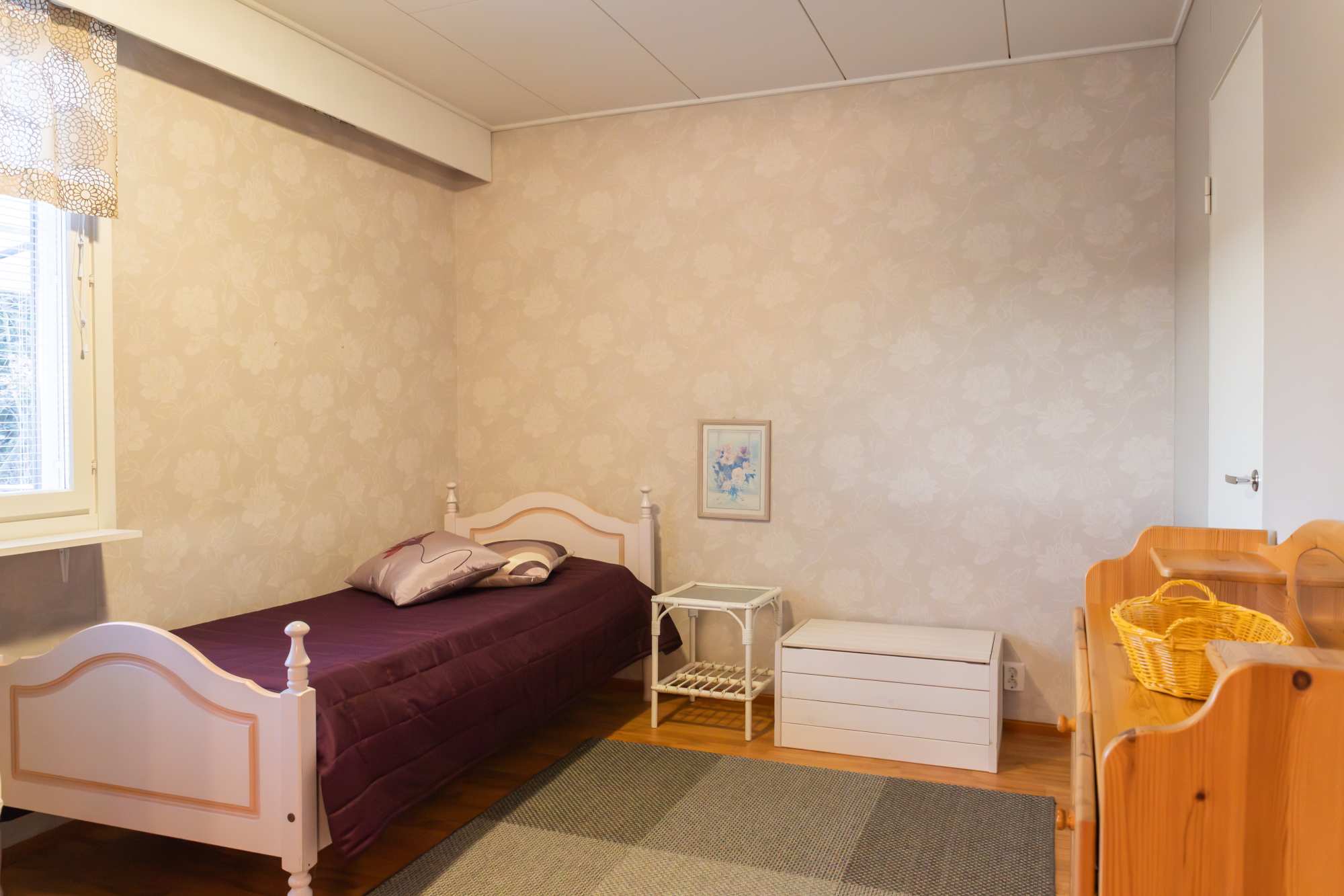 | Makuuhuoneen materiaalit | Lattia: Laminaatti Seinät: Tapetti |