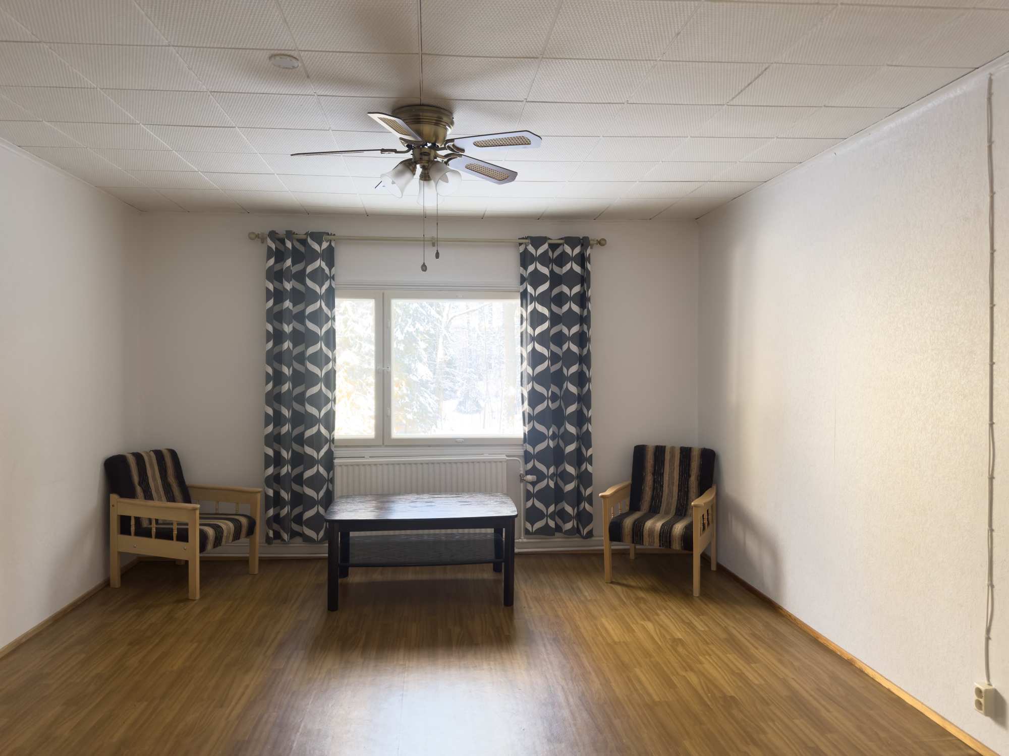 | Olohuoneen materiaalit | Lattia: Muovimatto Seinät: Tapetti |