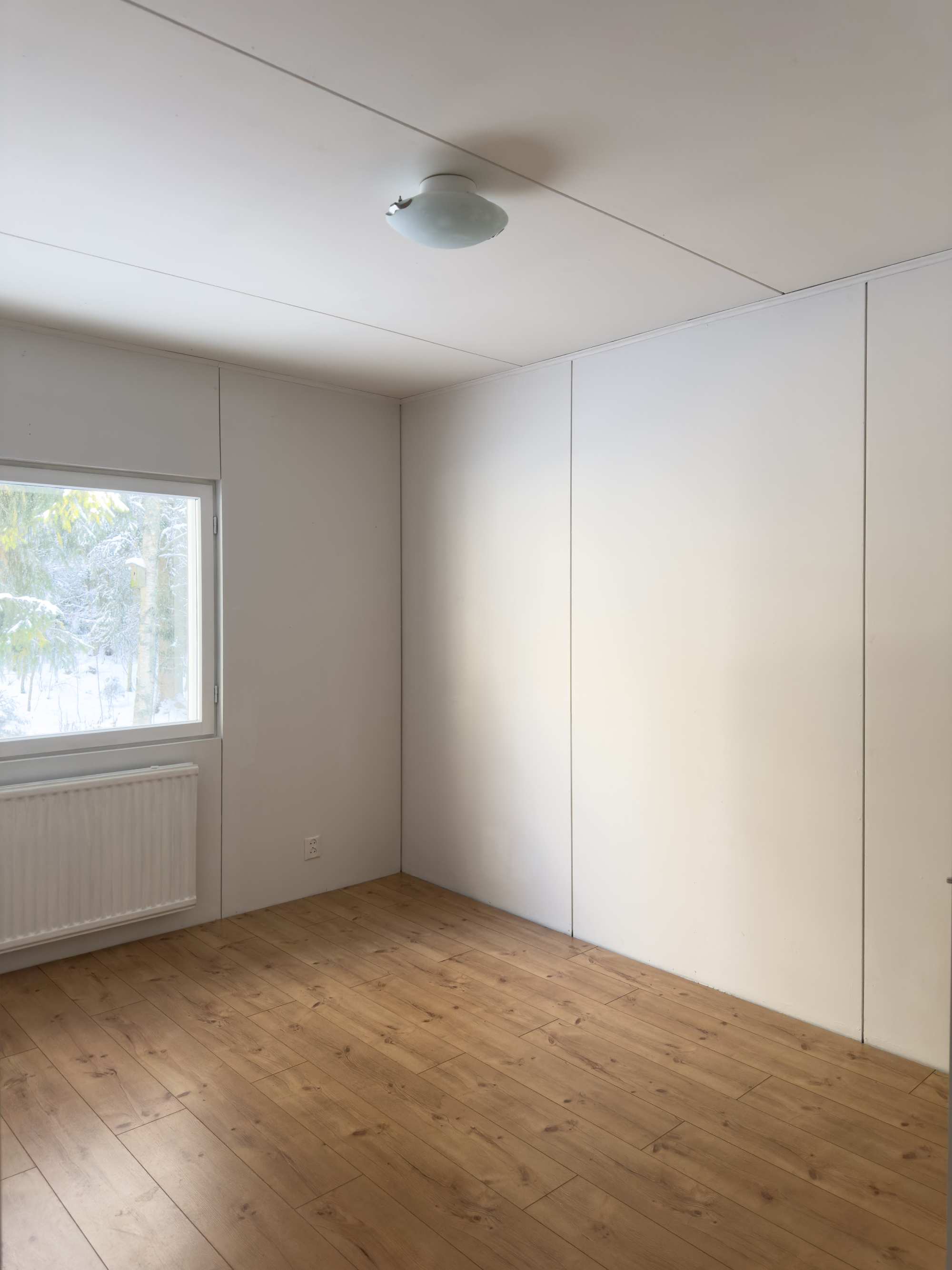 | Makuuhuoneen materiaalit | Lattia: Muovimatto Seinät: Tapetti ja puolipaneeli |