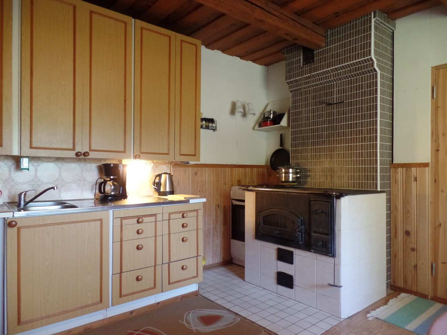 | Keittiön varusteet | Liesi, jääkaappipakastin ja puuhella |