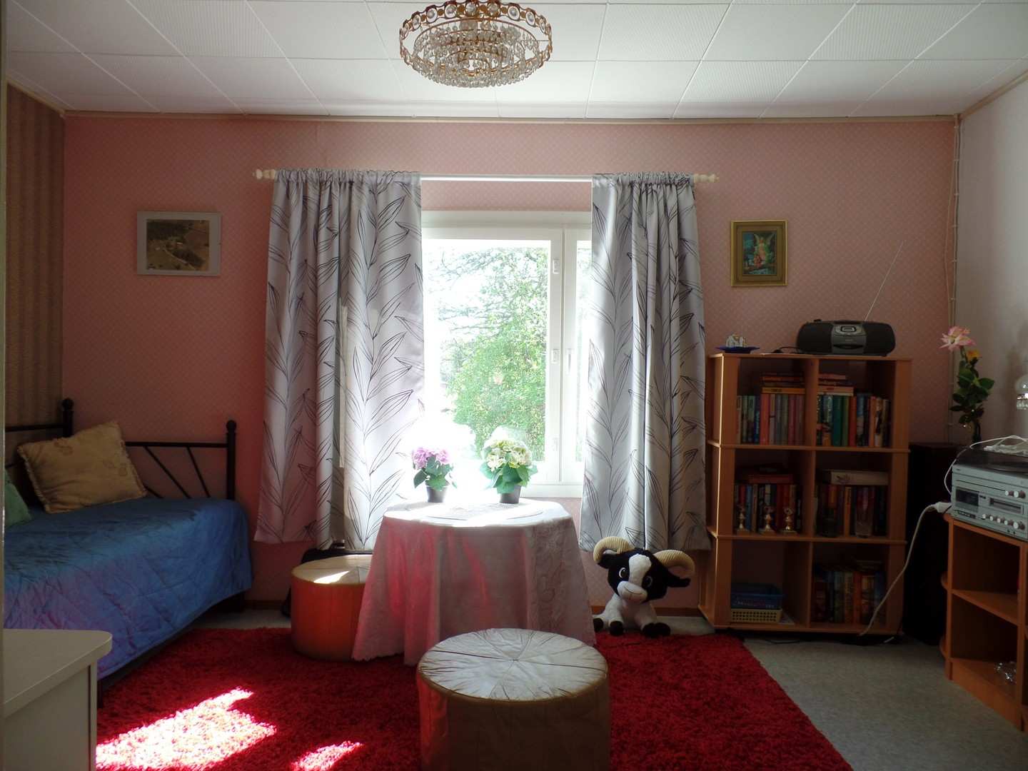 | Olohuoneen materiaalit | Lattia: Muovimatto Seinät: Puolipaneeli ja tapetti |