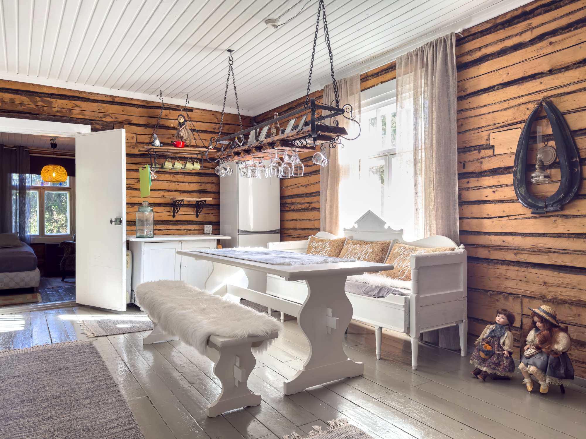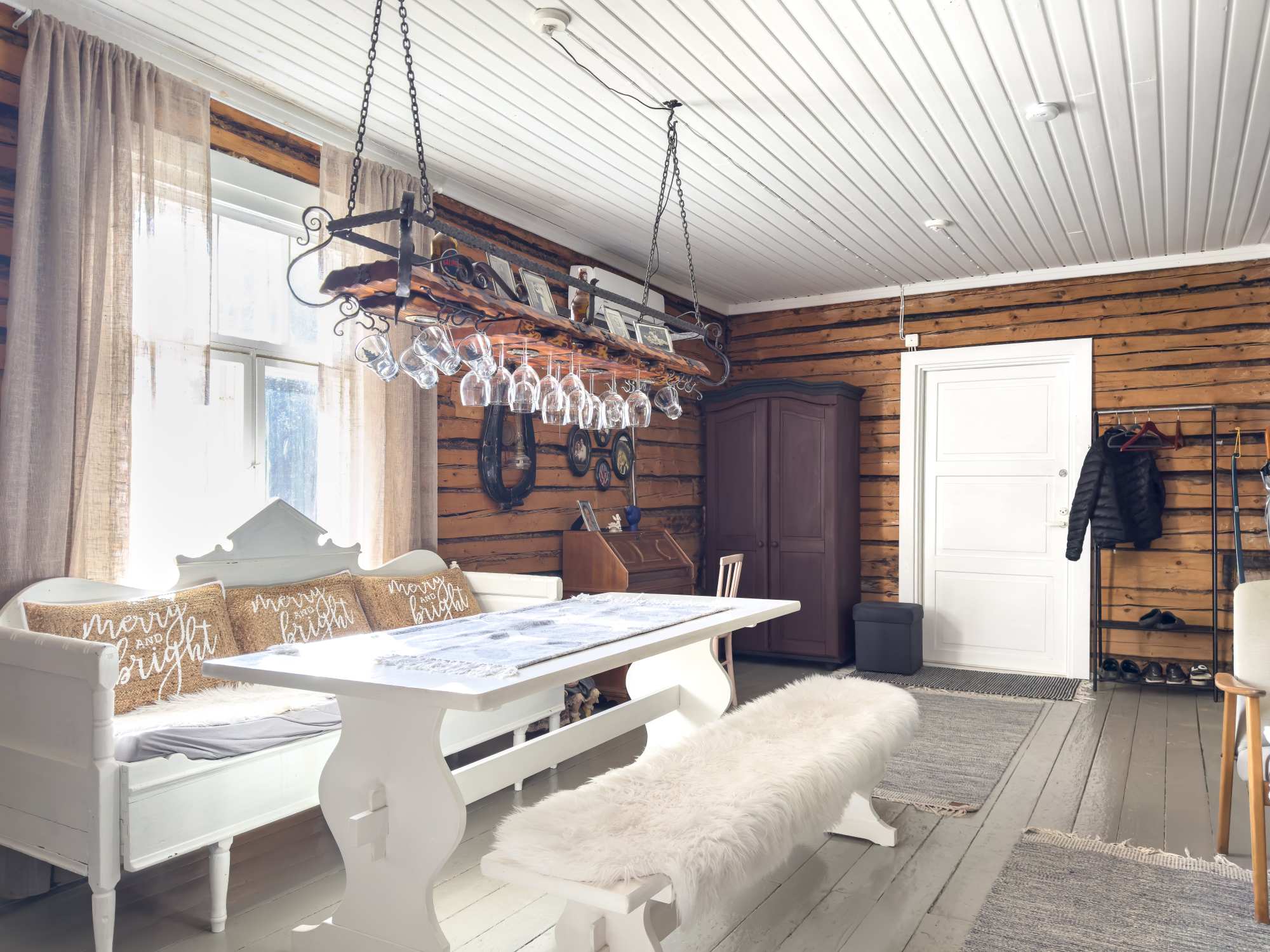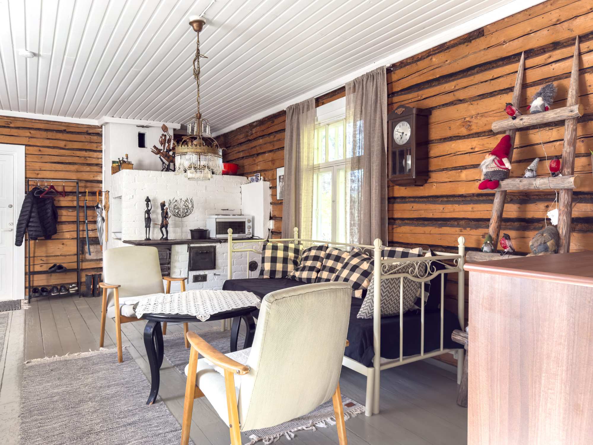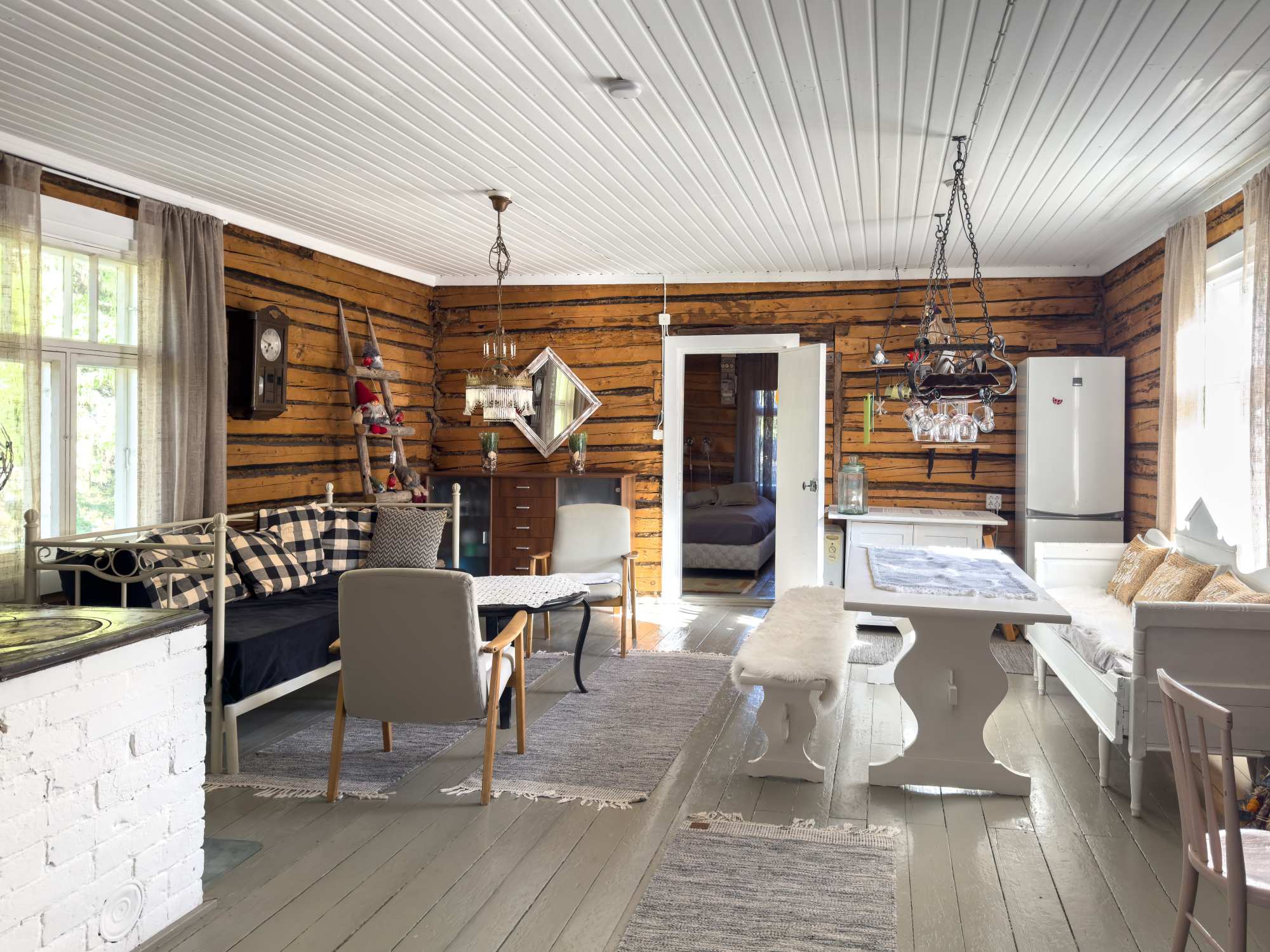 | Seinät | Kaikissa huonetiloissa on hirsiseinät. |