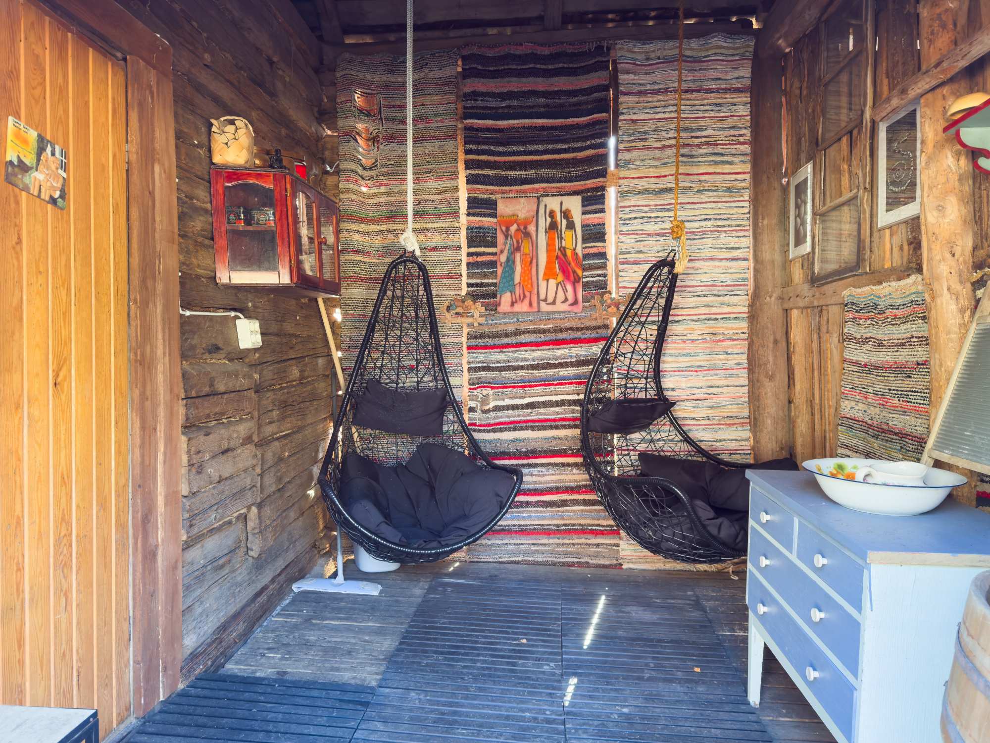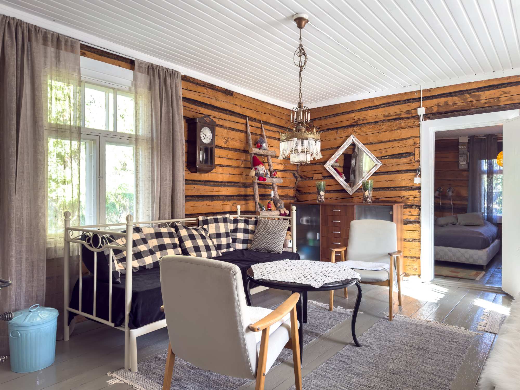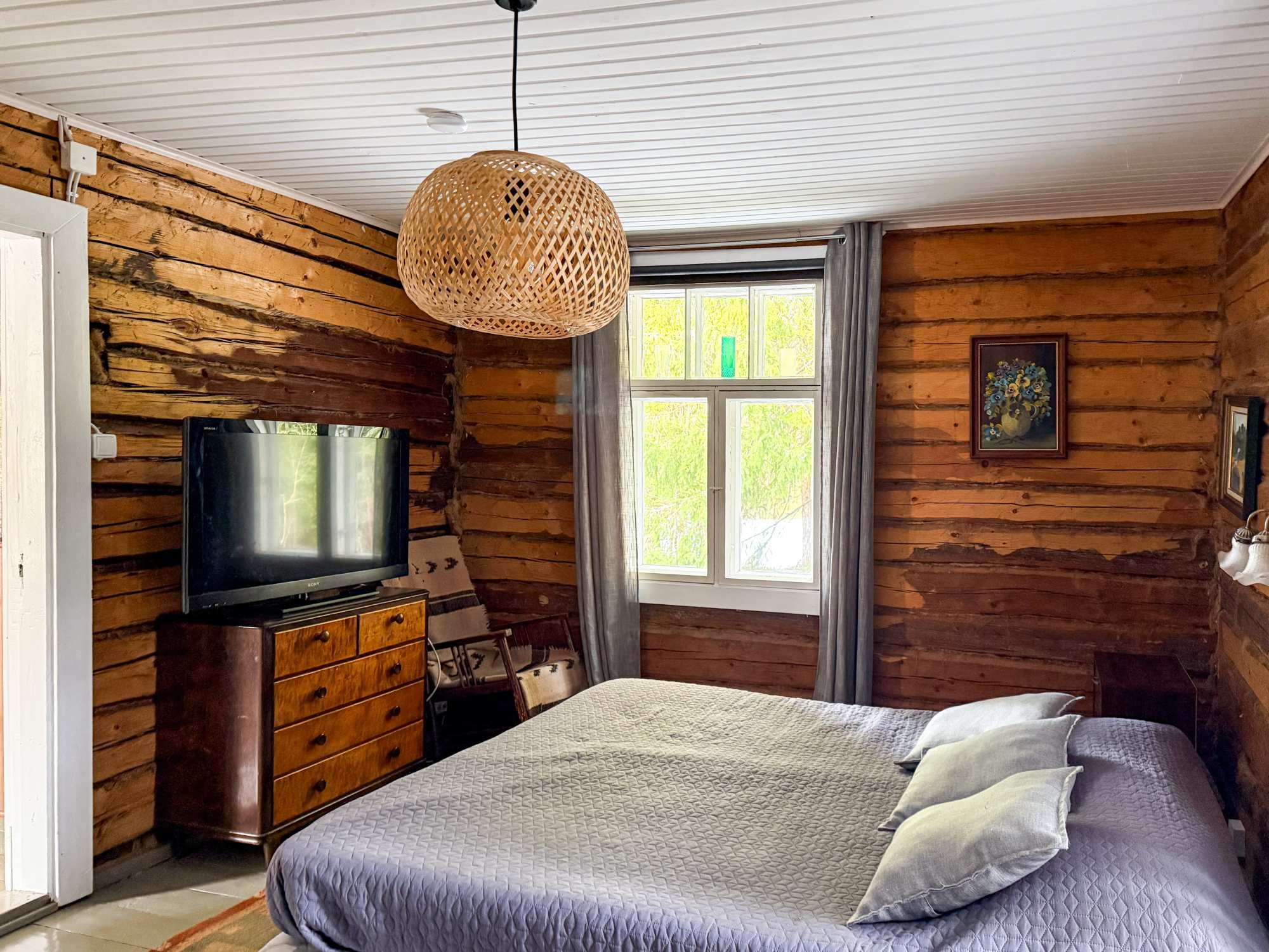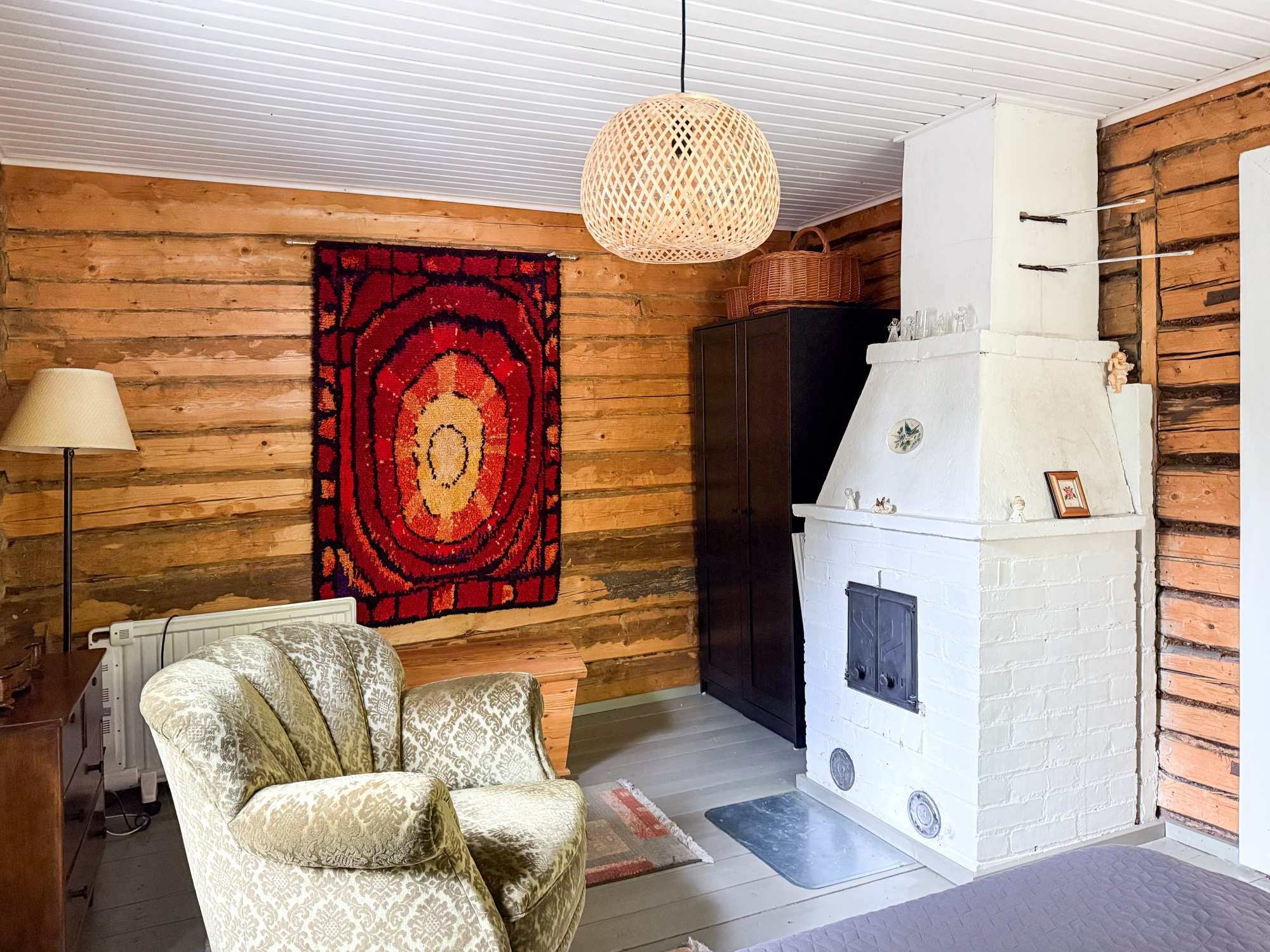 | Makuuhuoneen materiaalit | Lattia: Lauta Seinät: Hirsi |