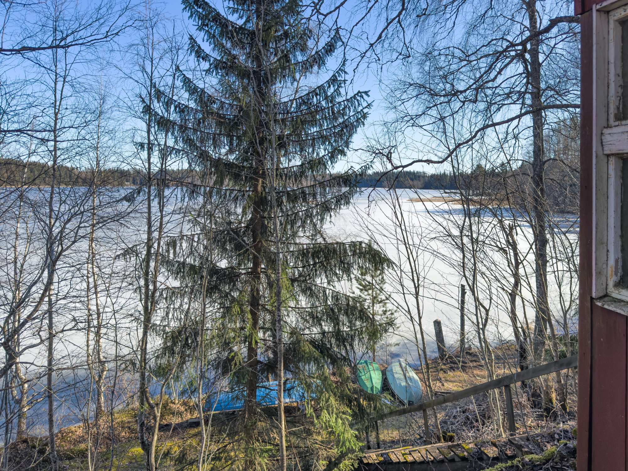 | Lisätietoja tontista | Purkukuntoiset rakennukset sijaitsevat mäen päällä. Kiinteistön edustalla rantaviivassa on venevalkama, johon on kolmella kiinteistöllä oikeus. |