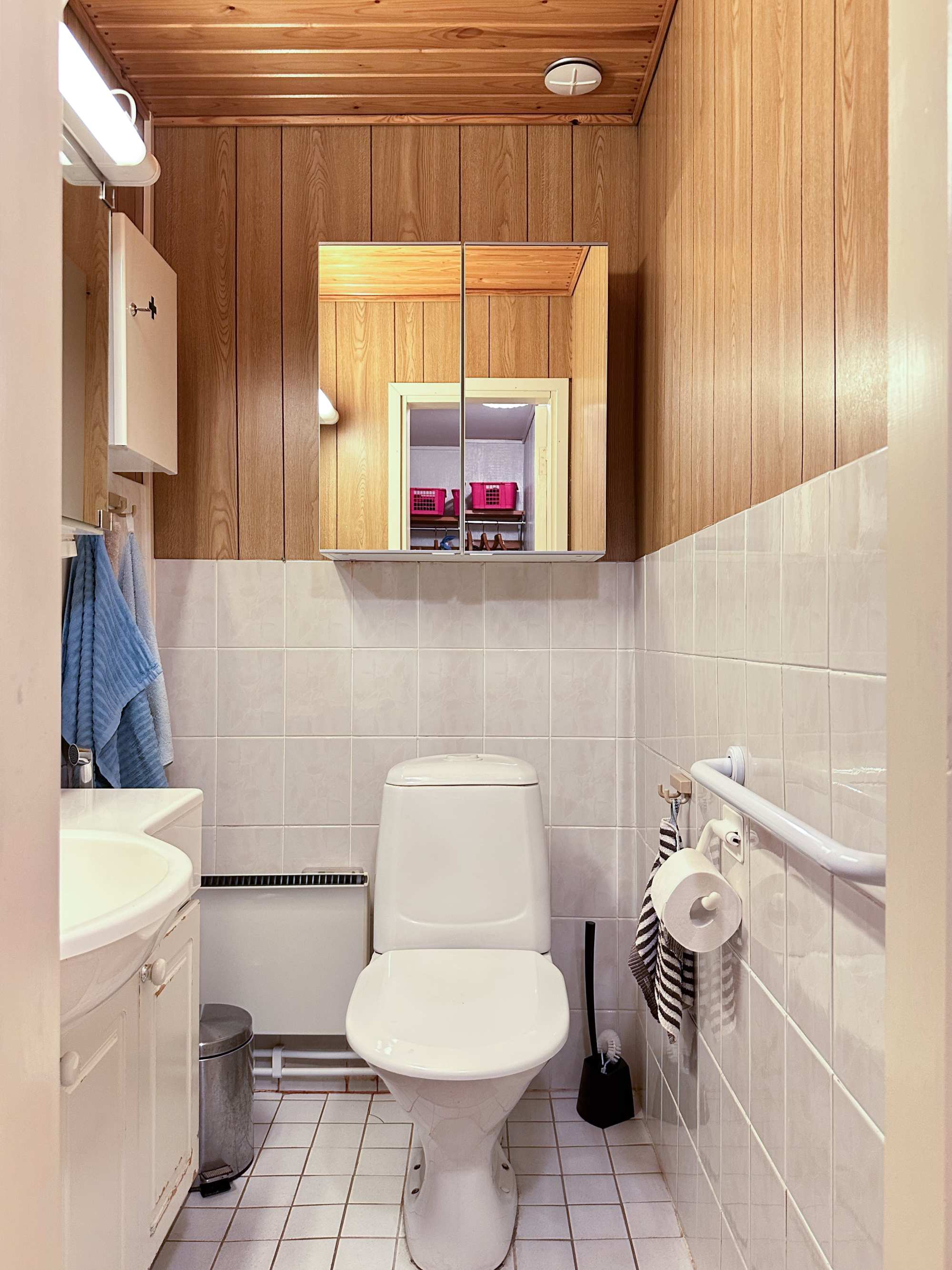 | Kylpyhuoneen materiaalit | Lattia: Laatta Seinät: Kaakeli |