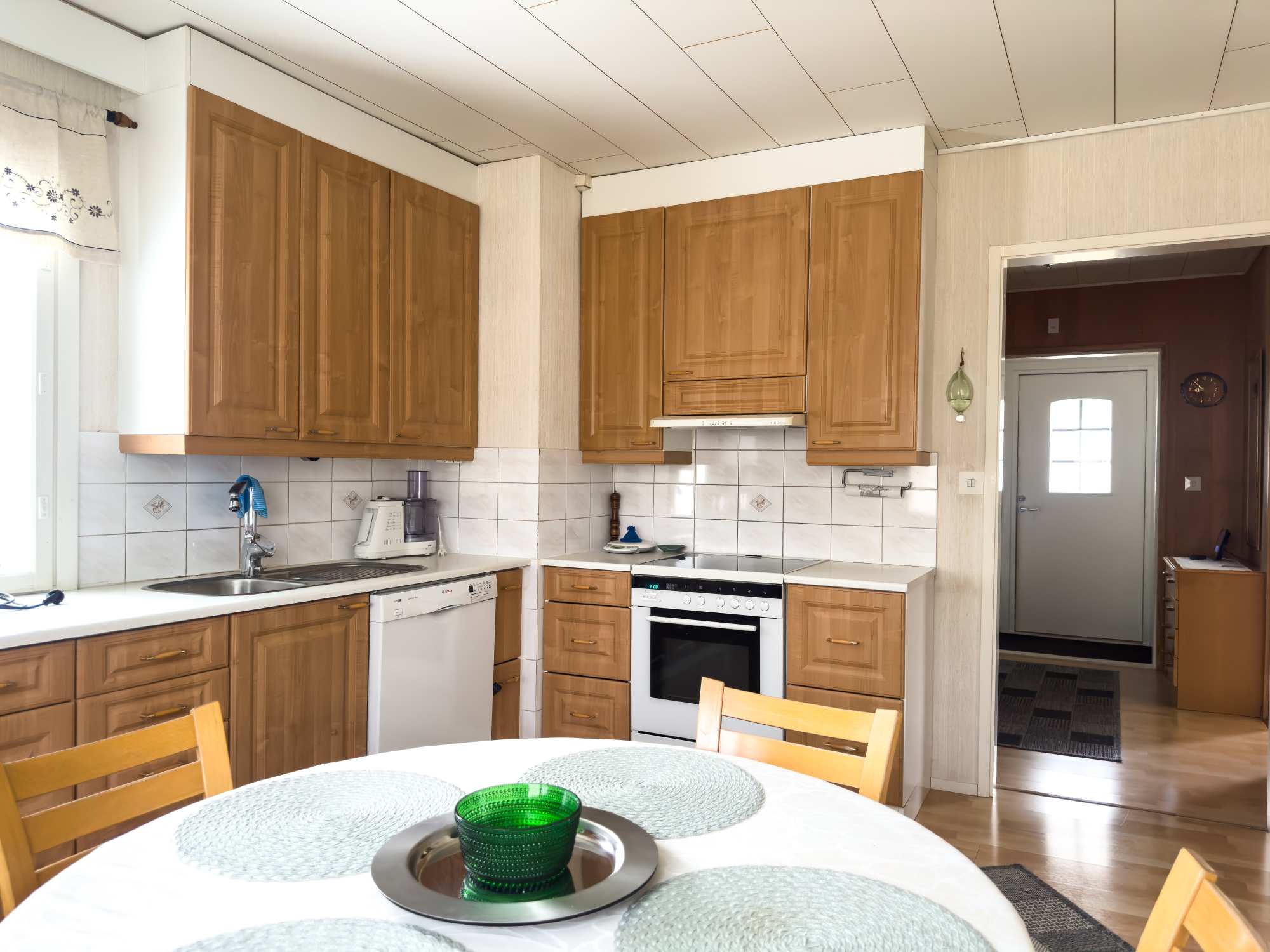 | Keittiön varusteet | Jääkaappi, erillinen pakastin, liesi, liesituuletin ja astianpesukone |