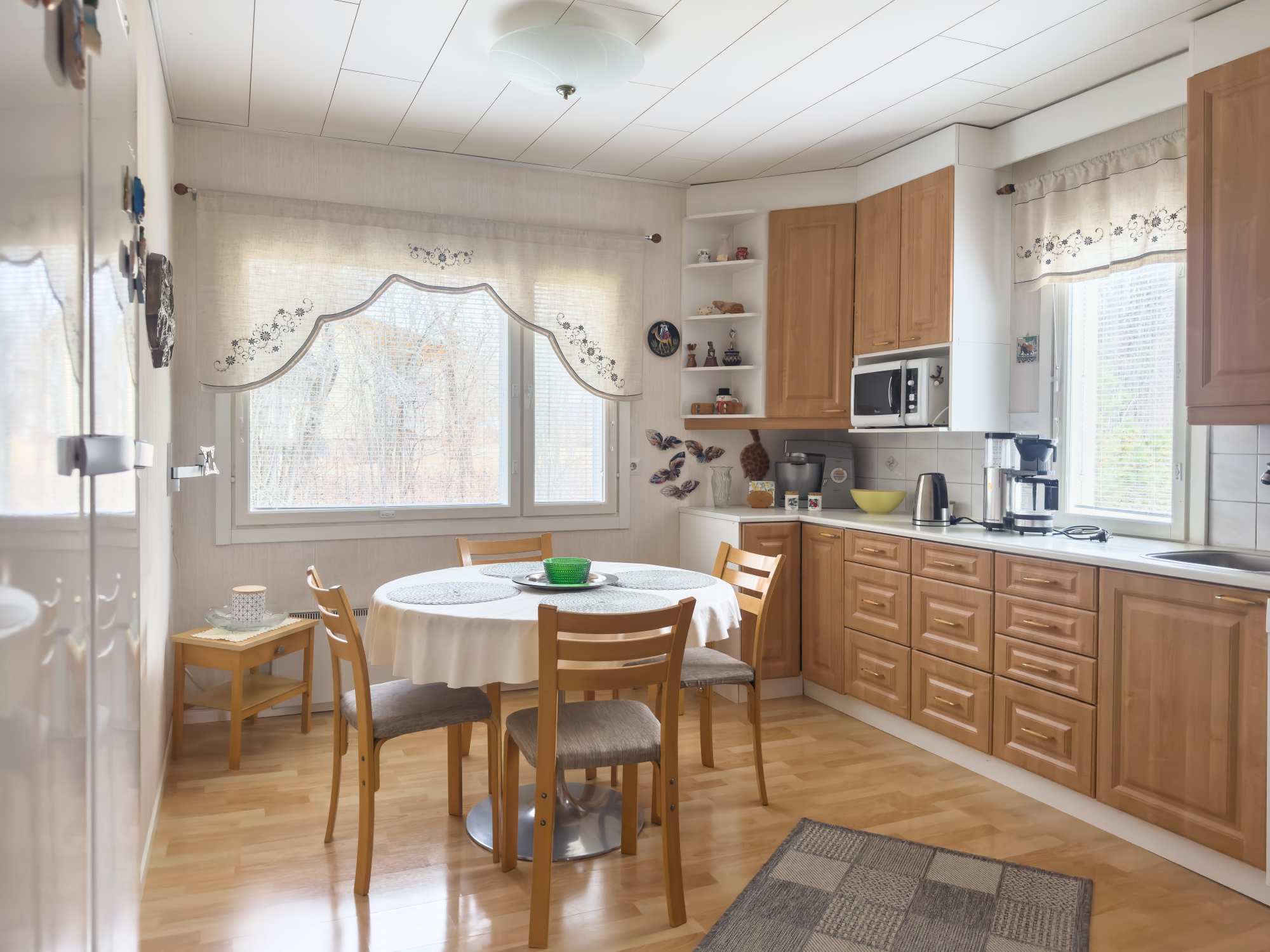 | Keittiön materiaalit | Lattia: Laminaatti Seinät: Maali |