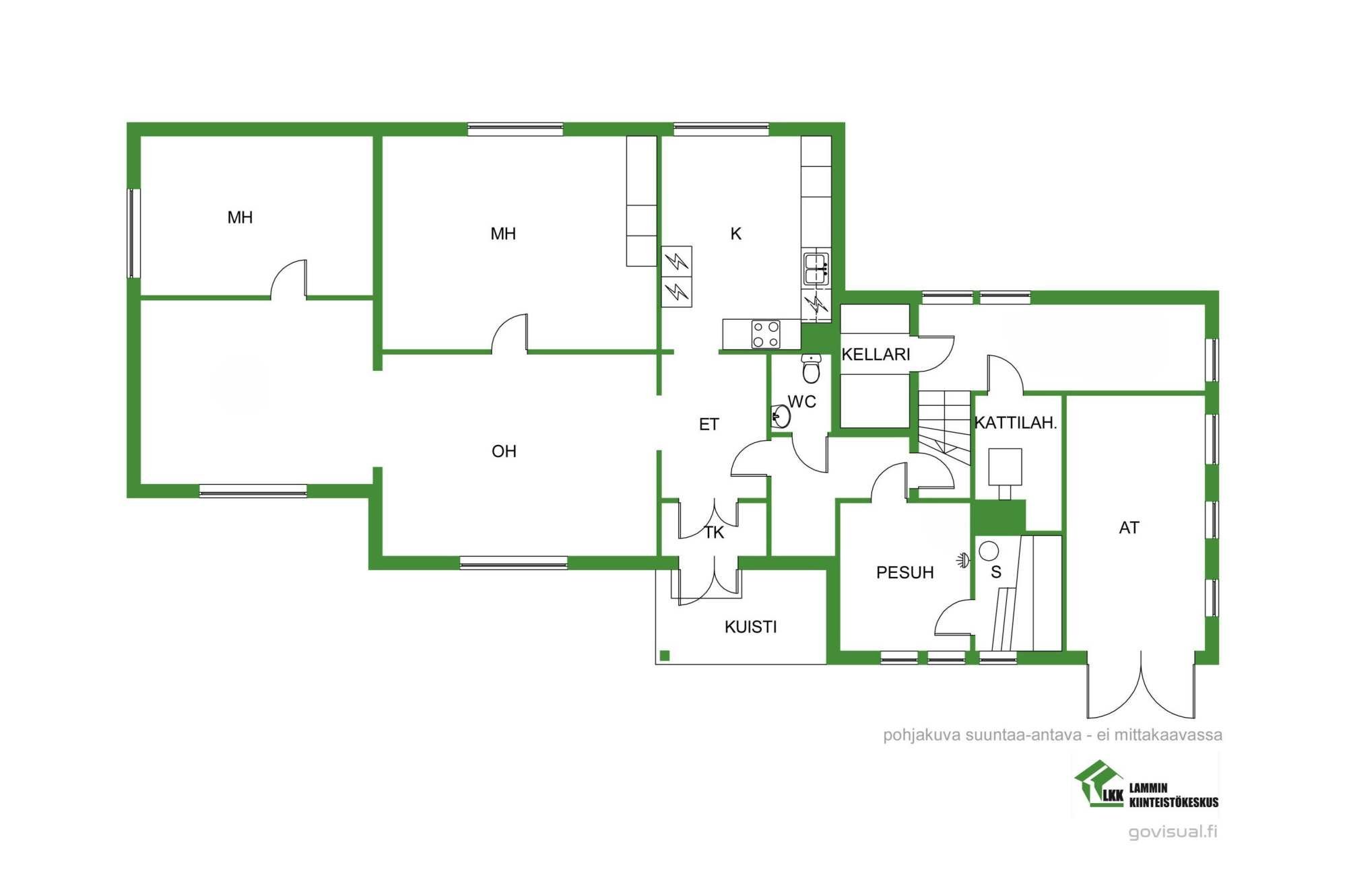 - 3-4 h + k + s + psh + wc + varastotilat + 2 x autotalli