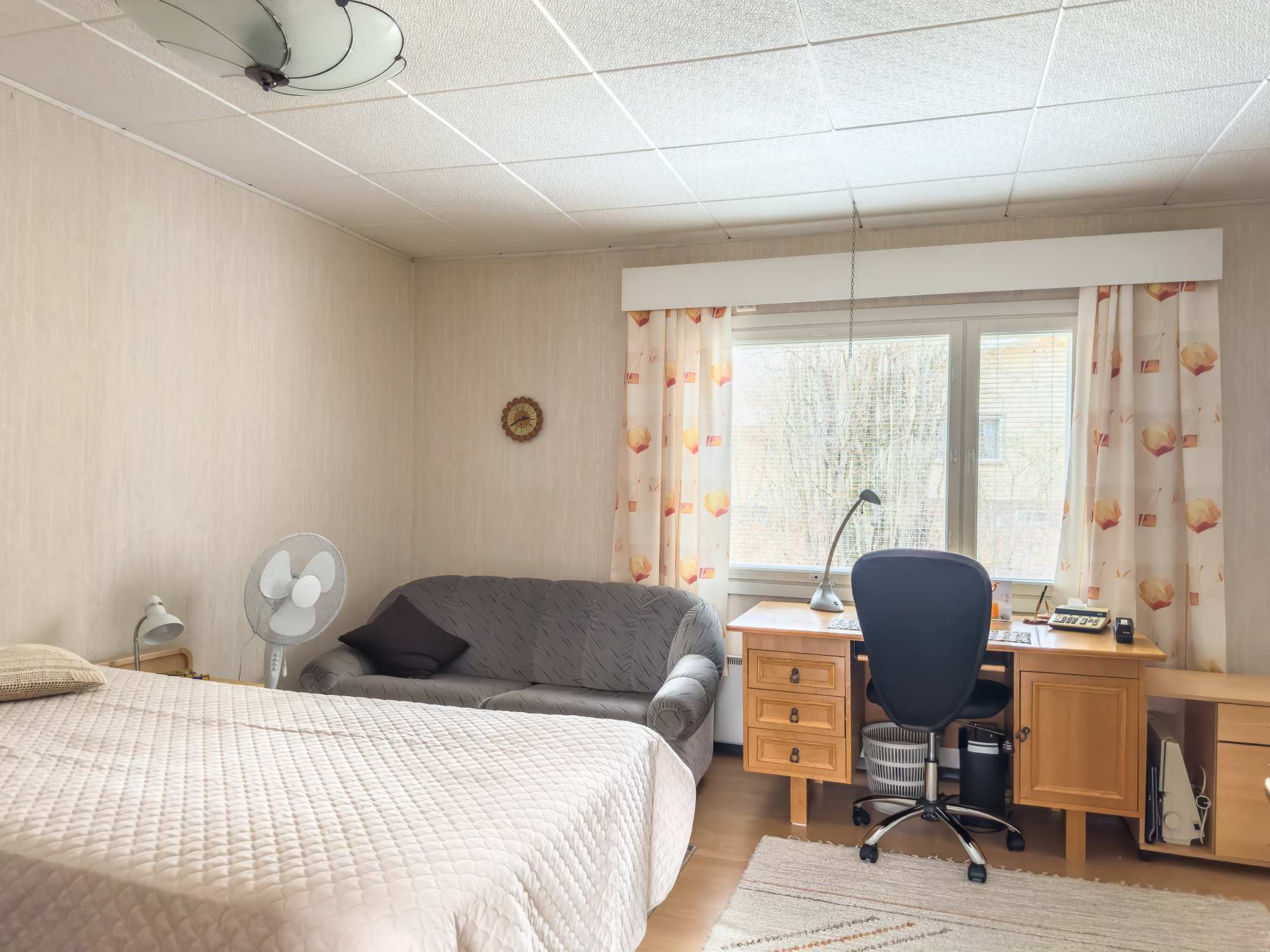 | Makuuhuoneen materiaalit | Lattia: Laminaatti Seinät: Tapetti |